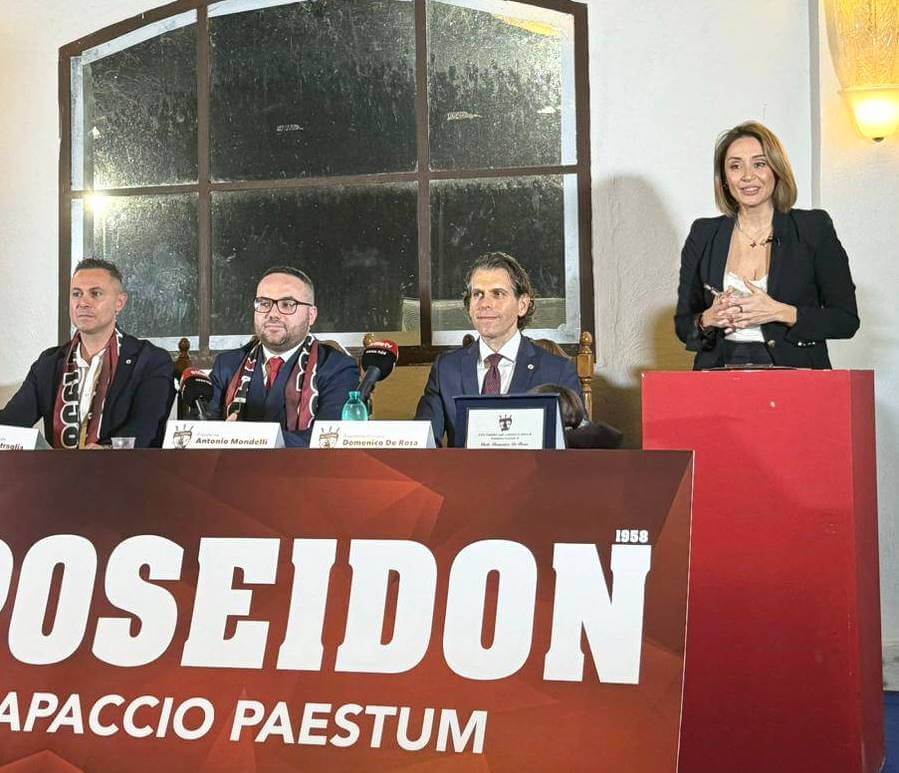 L’ex tabacchificio Cafasso si tinge con il granata della US Poseidon 1958. Questo venerdì 5 gennaio è iniziata una nuova era per la prima squadra di calcio di Paestum, con la cerimonia di conferimento della presidenza onoraria all’imprenditore salernitano Domenico De Rosa, CEO del gruppo SMET.